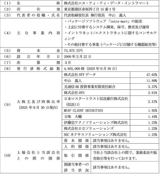 当社は、2026年2月19日開催の取締役会において、株式会社エヌ・ティ・ティ・データ・イントラマート(東京都港区、代表取締役社長:中山義人、以下「イントラマート」)との間で、資本業務提携を行うことを決議いたしましたので、下記のとおり、お知らせいたします。