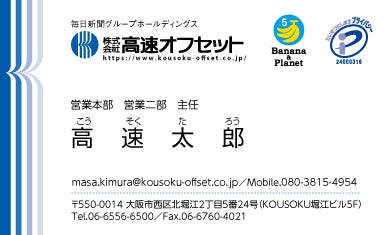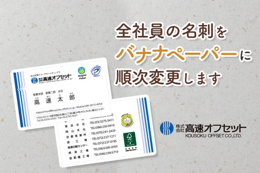 環境に配慮した印刷物を取り扱う株式会社高速オフセット(本社:大阪市西区、代表:橋本 伸一、以下高速オフセット)は、SDGs達成に向けて一人ひとりの意識を高めるために、全社員の名刺を順次バナナペーパーに変更いたします。今までよりバナナペーパーの使用量を上げ、ザンビアへの貢献に取り組んでまいります。