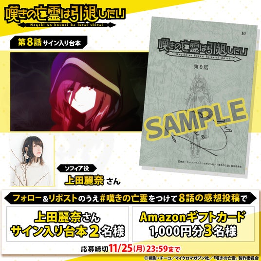 第8話の放送を記念して、上田麗奈さん(ソフィア役)の直筆サイン入り台本やAmazonギフトカード1000円分が当たるキャンペーンを開催いたします。