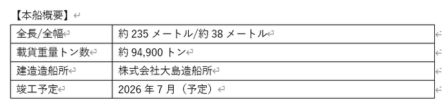 本船は、舞鶴発電所向けの既存専用船に次いで海外炭輸送船隊の一翼を担うべく、2026年後半の竣工を予定しています。