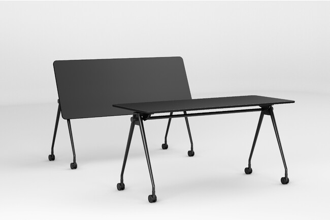 「アレッテ」は、固定テーブルのようなシンプルなデザインを保ちながら、機能性を兼ね備えたミーティングテーブルです。決まった向きがない脚のデザインで、天板のどちらからも使用できます。天板はレバー操作で簡単に水平と跳ね上げを行うことができ、未使用時は天板の向きを変えてネスティングすることでコンパクトに収納が可能です。ミーティングから個人作業まで、さまざまなワークシーンに対応します。