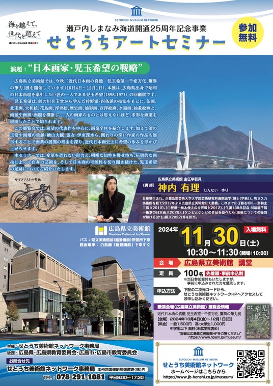 ことを記念し、広島県内の「せとうち美術館ネットワーク」参加施設の一つである広島県立美術館にて開催します。同館学芸員の方を講師としてお招きし、広島にゆかりのある日本画家・児玉希望の作品等を中心に講演いただきます。本セミナーの参加は事前申込制(無料)となりますので、参加希望の方は申込フォームよりお申込みください。