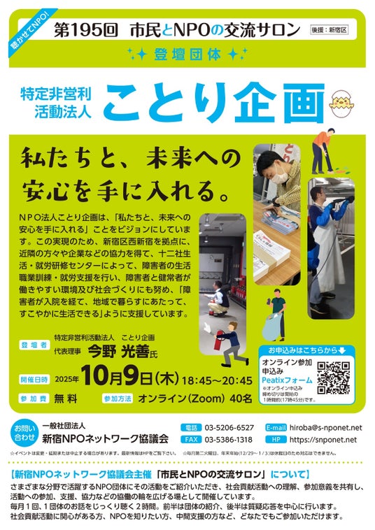 (登壇団体:特定非営利活動法人 ことり企画)を10月9日(木)に開催します!絶賛、参加者募集中です!!