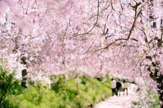 並木道はまるでのれんのように降り注ぐしだれ桜がお迎えします