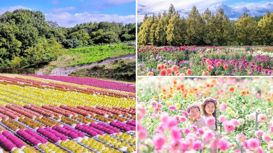 豪華絢爛・多種多様なダリアと、色鮮やかで可愛らしい花姿のガーデンマムの、秋の絶景をご堪能ください。