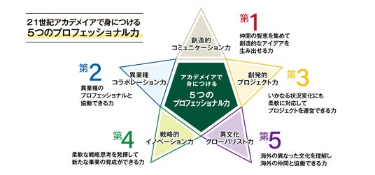 デザイン、ビジュアルアーツ、ビジネス、ホスピタリティなど、45分野の最先端エキスパート・コースを通じ、独自の実践体験的なカリキュラムを提供します。このカリキュラムにより、「異業種コラボレーション力」や、「戦略的イノベーション力」など、AI革命の時代に、優れたリーダーシップを発揮して実社会で活躍するために必要な「5つのプロフェッショナル力」を身につけた人材や、日本だけでなく、世界で活躍する「異文化グローバリスト」と呼ぶ人材を育成します。