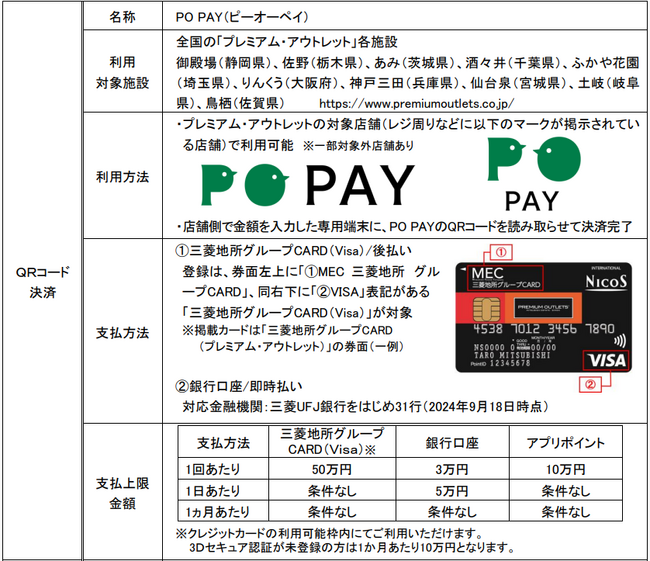 三菱地所・サイモン株式会社(東京都千代田区、代表取締役社長:山岸正紀、以下:三菱地所・サイモン)と三菱UFJニコス株式会社(同、代表取締役社長:角田典彦、以下:三菱UFJニコス)はこの度、三菱地所・サイモン運営の「プレミアム・アウトレット」利用者のロイヤリティ向上を目的に、専用QRコード決済アプリ「PO PAY(ピーオーペイ)」のポイント機能を拡充し、利用額に応じて基本ポイントの最大3倍のアプリポイントが貯まる特典「PO PAYリワード」を追加、10月1日にその取り扱いを開始します。