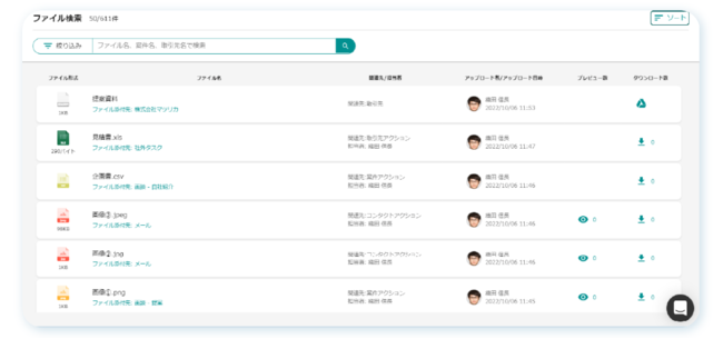 「プレビュー数」「ダウンロード数」によってソートをすることができるため、ぱっと活用されているファイルがどれなのかを知ることができます。
