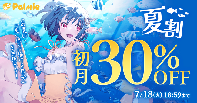株式会社パルミー(所在地:東京都港区、代表取締役:大野英紀、以下パルミー)は、本日2023年7月6日(木)12時00分~2023年7月18日(火)18時59分までの期間、受講料が初月30%OFFになる「夏割」を開催いたします。