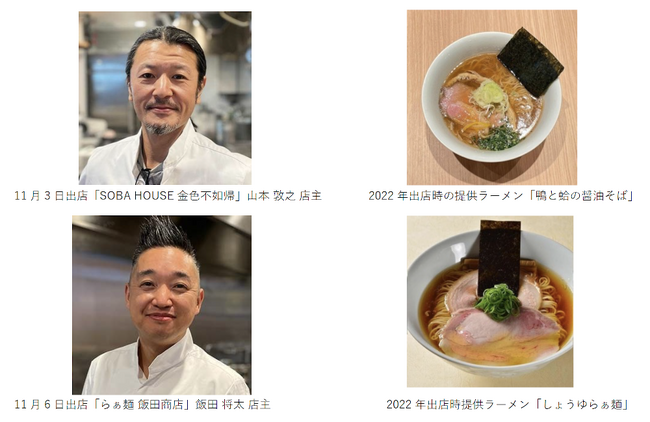 特別出店第一弾を発表!「金色不如帰」「らぁ麺飯田商店」