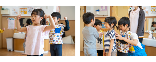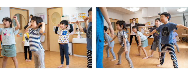 また、オンラインレッスンでの参加が可能で、遠くの園同士がつながることができたり、大きな場所を有する必要がなく、園庭やホールなどが無くても楽しむことができます。