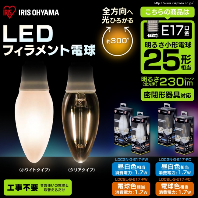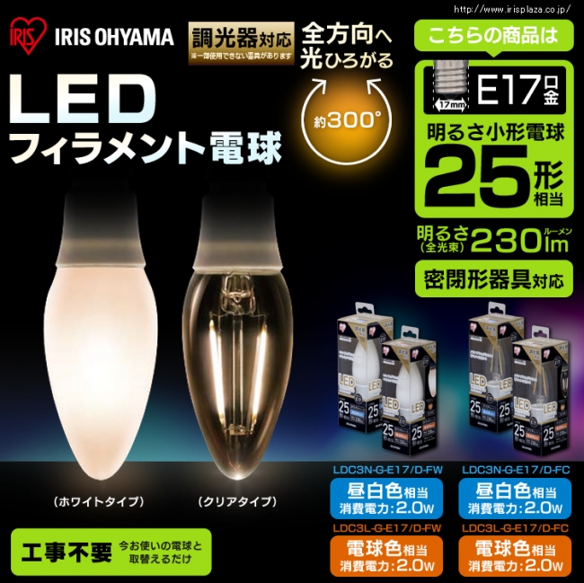 「LEDフィラメント電球 昼白色(230lm) LDC2N-G-E17・電球色(230lm) LDC2L-G-E17 全2色」