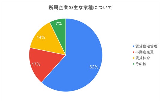 受験者の所属企業の主な業種は「賃貸住宅管理」が62%で過半数を占め、次いで「不動産売買」17%、「賃貸仲介」14%と、不動産業界の各領域から幅広く注目されていることが分かります。