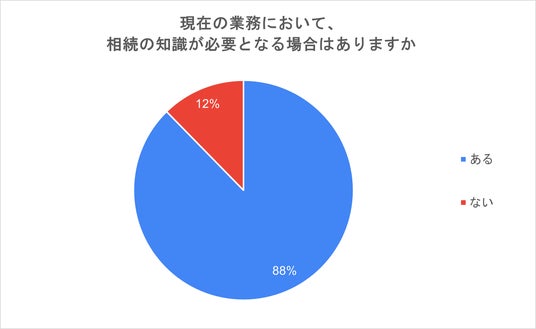 特筆すべきは、「現在の業務において、相続の知識が必要となる場面はありますか」という設問に対し、88%が「ある」と回答している点です。