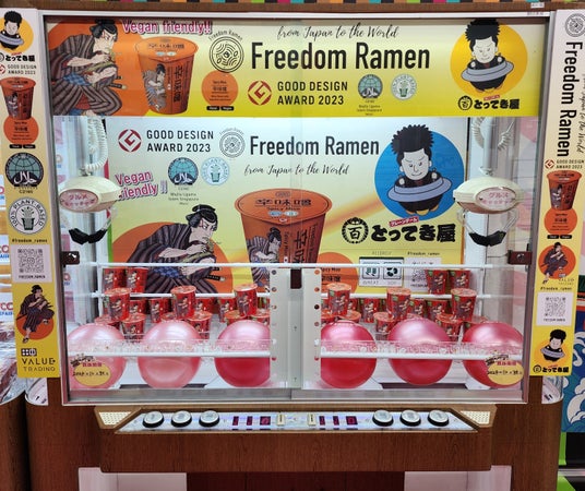 食のダイバーシティ対応に寄与するクレーンゲーム『フードバリアフリーキャッチャー』には、Freedom Ramenを景品に採用しました。