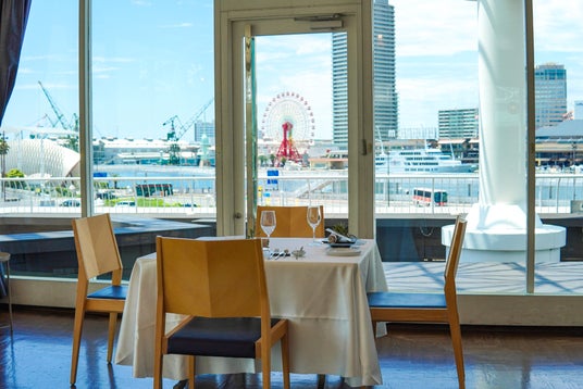 大海原を駈ける帆船の帆と波をイメージした、白いスペースフレーム屋根が特徴的な「神戸海洋博物館」の2階に位置するレストラン「OCEAN PLACE(オーシャンプレイス)」。