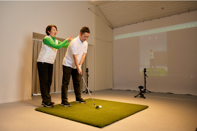 ※2023年3月15日時点日本国内外における「自由視点映像/マルチアングル映像技術「SwipeVideo(スワイプビデオ)」(AMATELUSが保有する国際特許技術)がゴルフレッスンスタジオに常設され、オンラインレッスンとして活用されるのは世界初となります。AMATELUS社調べ。