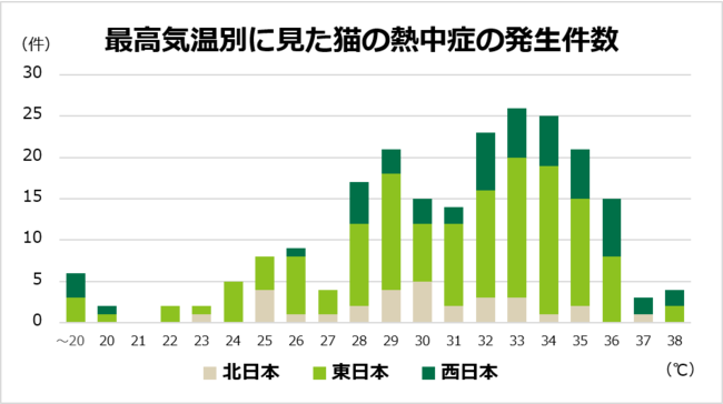 地域別では東日本と西日本は全体的に同じ傾向となっている一方で、北日本では最高気温による差があまり見られませんでした。