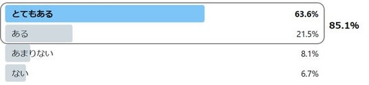 今回、自宅で愛犬をシャンプーしたことがある飼い主に対し、「ドライヤーを持たず、ハンズフリーで乾かせたらいいと思ったことがある」と質問したところ、63.6%が「とてもある」、21.5%が「ある」と回答。犬の飼い主の8割以上がハンズフリーで乾かしたいと思っていることが分かりました。
