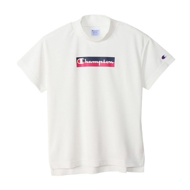 UVカット、速乾、抗菌防臭などの機能を備えたポリエステルカノコ素材を使用した、暑い時期でも快適にプレーしやすいモックネックシャツです。胸にツートーンのボックスにChampion(チャンピオン)ロゴをデザインしたプリントがポイントです。シンプルでコーディネートしやすいアイテムです。