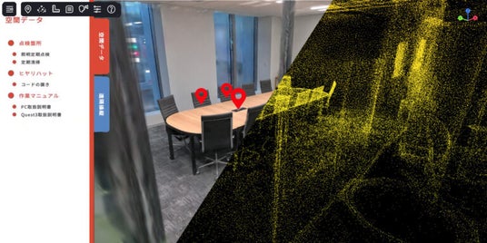 デジタルツイン空間の構築では、空間をスキャンし、点群データをもとにデジタルツイン空間を制作します。