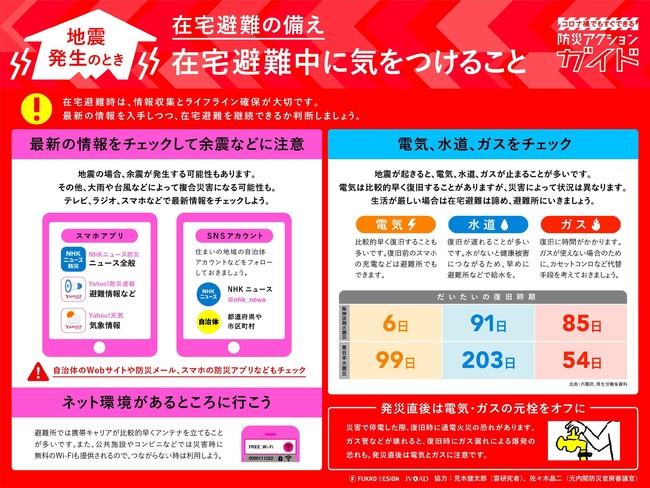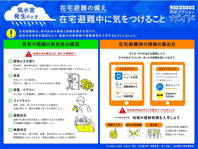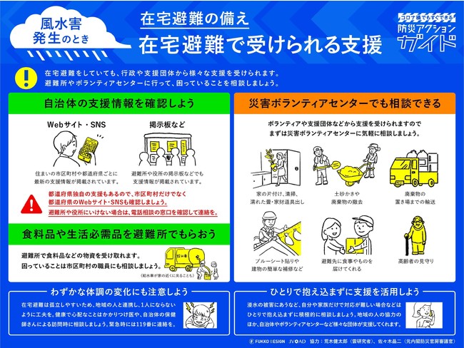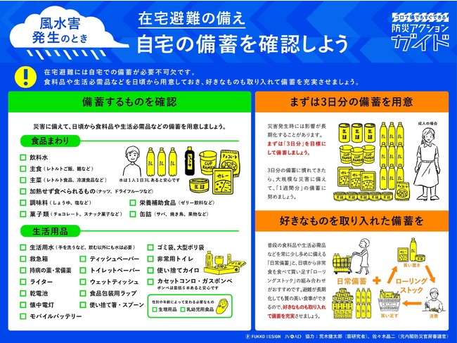 TBWA HAKUHODO(本社:東京都港区、代表取締役社長兼CEO:今井明彦)とFUKKO DESIGN(本社:東京都渋谷区、代表理事:河瀬大作)は、近年の自然災害において注目されている在宅避難をする際に、どのような対策をすればよいのかをまとめた『コロナ禍でもすぐできる!在宅避難の備え』を発表しました。