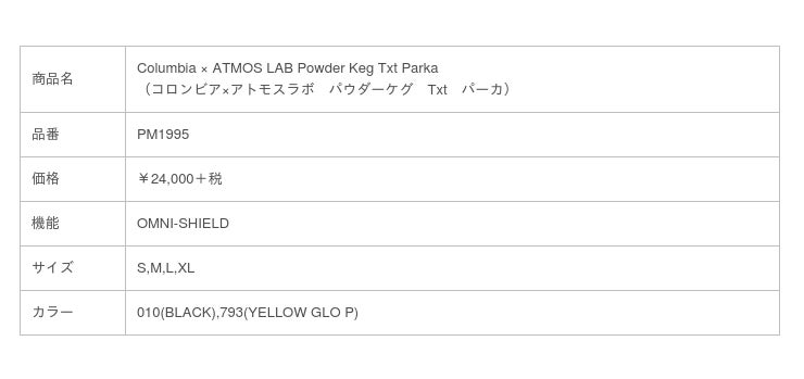 コロンビア一部直営店(渋谷店、THE LIFESTYLE STORE、南堀江店、京都店、神戸店)にて10月24日(土)より、コロンビアECサイトは10月26日(月)より販売予定。