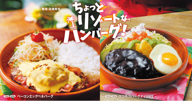 びっくりドンキーはこの夏、お客様に「ちょっとした非日常感」を感じていただき、癒しと笑顔をお届けすべく、スローな南国気分を味わえるディッシュメニュー2品とアラカルトメニュー1品を提供します。