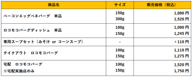※ロコモコバーグディッシュの写真のハンバーグは100gになります。