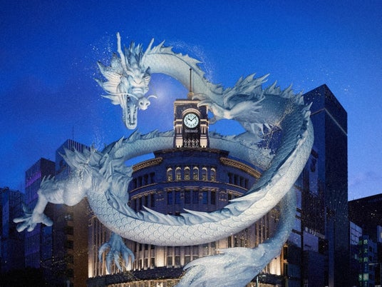 「XR CHANNEL」をインストールしたスマートフォンをSEIKO HOUSE GINZAの建物全体にかざすと、ショーウインドウを飾る干支の“時の龍(辰)”が解き放たれ、SEIKO HOUSE GINZAから銀座の空へと舞い上がる様子を臨場感あふれる演出で体験いただけます。また、AR体験の最後には龍があなたの今年を占う「時の辰みくじ」も楽しめます。2024年の幕開けは、銀座で特別なひと時をお楽しみください。