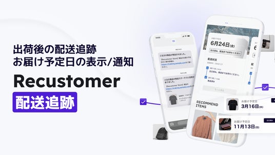 Recustomer 配送追跡とは、お届け予定日を通知・表示するサービスです。配送ステータスが更新されるごとに通知を送り、配送追跡ページでお届け予定日を表示します。ブランド独自の配送追跡ページの構築や、配送通知を実施することで、購入後に新たな顧客接点を創造します。