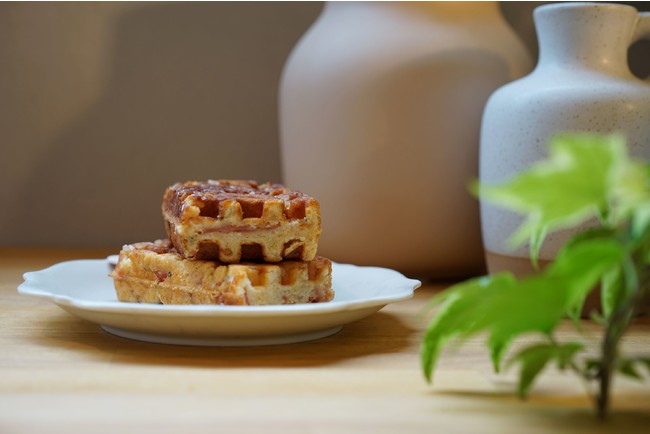 チーズ・ベーコン・ブラックペッパーをたっぷり練り込んだ、京ワッフル初のお食事系フレーバー『こんがりベーコンとチーズの京ワッフル』