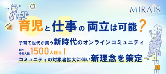 育休コミュニティ「MIRAIS(ミライズ)」(代表 栗林真由美、以下MIRAIS)はこれまでに1,534名の参加者を迎え、産育休者に向けて情報共有や交流の場を提供してきました。そして2024年10月にコミュニティの対象者を復職後の親にも拡大し、新たな理念を策定しました。