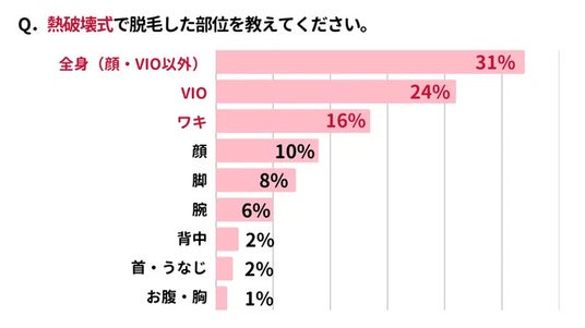 - 熱破壊式で脱毛した部位は「全身脱毛」が31%で最多
