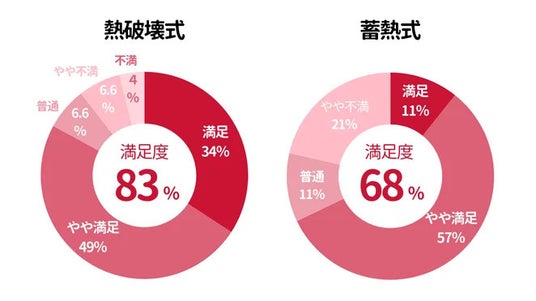 実際に蓄熱式で脱毛した人は68%の人が満足と回答したのに対し、熱破壊式で脱毛した人は83%が満足と回答しています。