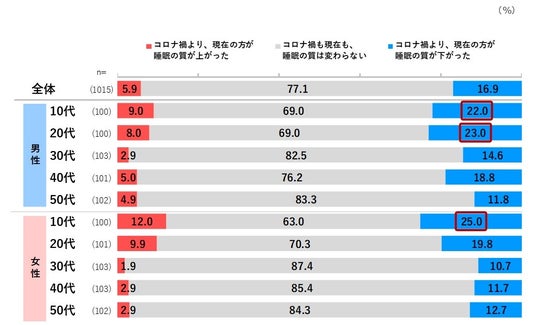 睡眠の質はコロナ禍より低下傾向、特に若年層で実感されている様子。