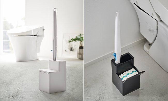 流せるトイレブラシのハンドルと替えブラシをセットで収納。