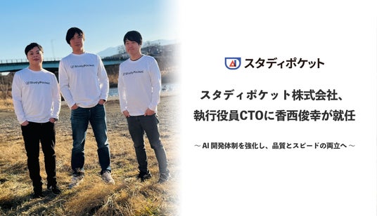 スタディポケット株式会社(本社:東京都千代田区、代表取締役CEO:山地 瞭/代表取締役CPO:鶴田 浩之)は、2026年1月1日付けで、執行役員CTO(Chief Technology Officer)に、香西 俊幸が就任したことをお知らせいたします。