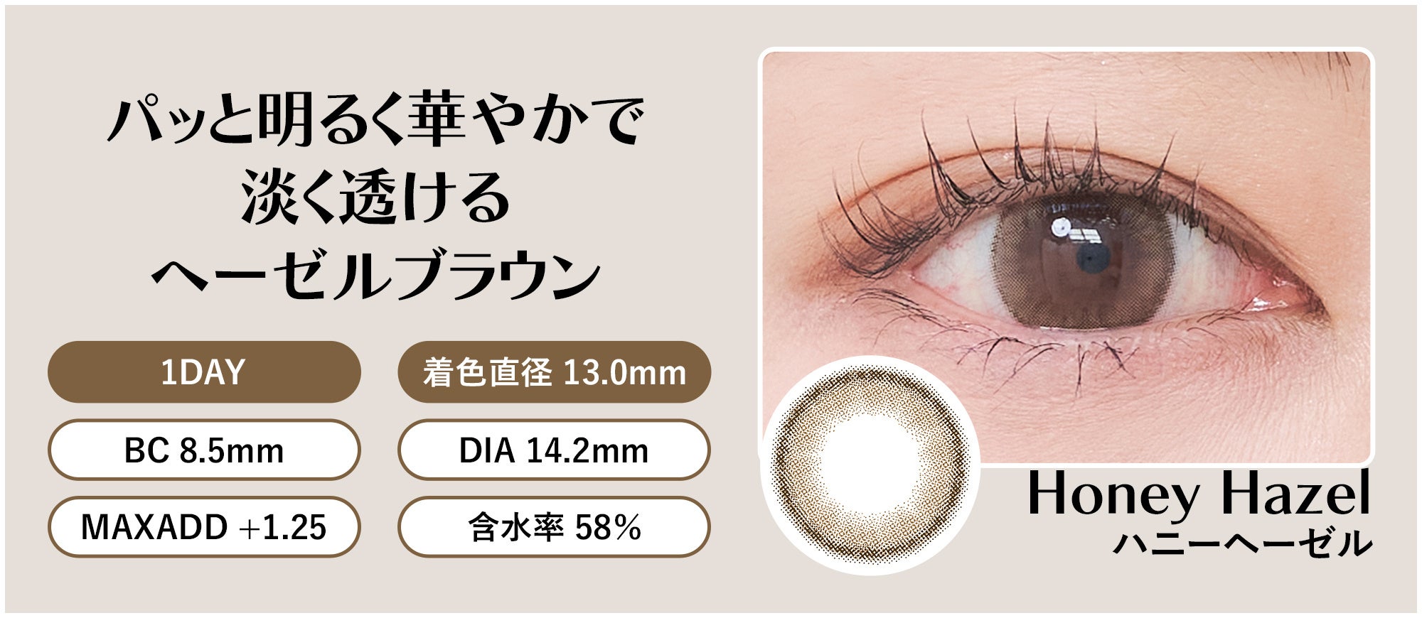 着色直径:モカブラウン/エレガントブラック:13.3mm、ハニーヘーゼル/ローズピンク:13.0mm