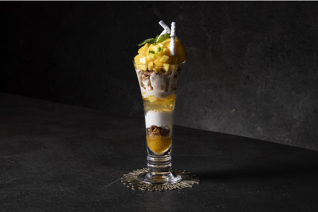 「誰もが大好きなマンゴー。美味しいジェラートとココナッツの味わいで南国をイメージしました。パッションフルーツの酸味がアクセントになり、濃厚だけどサッパリ食べていただける夏のパフェになりました!」延命寺美也