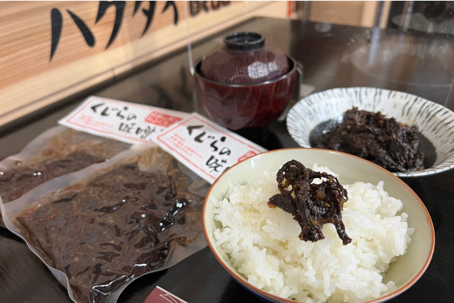 鯨の肉を醤油・味噌・しょうが等で味付けして煮込んだ鯨の佃煮。非常に手間暇かけてつくる商品で、ご飯のおともやおつまみとして味わっていただけます。お茶漬けにも最適です。