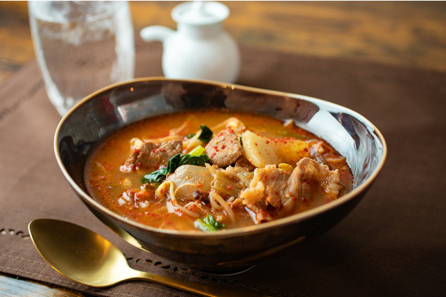 千葉県産黒毛和牛「かずさ和牛」100%使用、濃厚な旨辛ユッケジャンスープ。