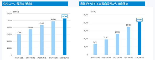 また、住宅ローンの融資実行残高は【約527億円】、仲介する金融商品預かり資産残高は【約206億円】を達成。幅広いご提案を実施しています。