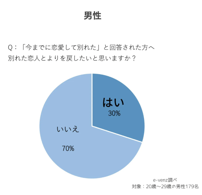 婚活・恋活や街コンなど中心とする男女の出会いメディアe-venz(イベンツ)を運営するノマドマーケティング株式会社(所在地:東京都渋谷区、代表取締役:三輪賢治)では、20代の男女1,000名を対象に元恋人とよりを戻したい人についてのアンケートを実施しました。