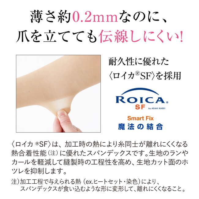 薄さ約0.2ミリなのに爪を立てても伝線しにくい。