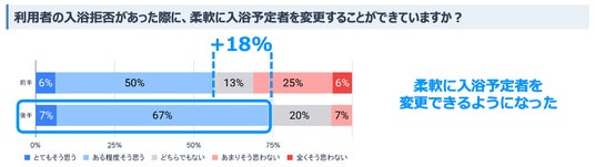 成果: 入浴予定者の柔軟な変更も影響して利用者の入浴回数は増加し、職員が仕事を楽しいと感じるようになった