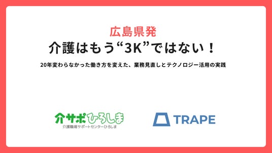 介護現場の生産性向上に関するガイドラインの作成など、2017年から国の施策づくりに関わり介護分野の変革をリードしてきた株式会社TRAPE(本社:大阪府大阪市、代表取締役社長:鎌田大啓)は、ウェルビーイングにあふれた介護事業所の実現を目指し、現場の業務改善やDXに不可欠な「チームづくり」や「課題の見える化・分析」を支援する無料のオンラインツール「生産性向上くん(R)」の提供と、「生産性向上」「働きがい向上」「リーダー育成」を同時に実現する伴走支援サービス「Sociwell(ソシウェル)」を展開する中で、令和7年度 広島県介護生産性向上総合相談センター様(社会福祉法人広島県社会福祉協議会“介サポひろしま”様が広島県より受託)の業務アドバイザーを受託し、広島県内で生産性向上の取組みを行う3つのモデル介護事業所に対して伴走支援を実施しました。