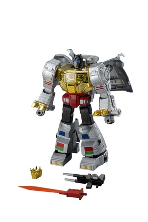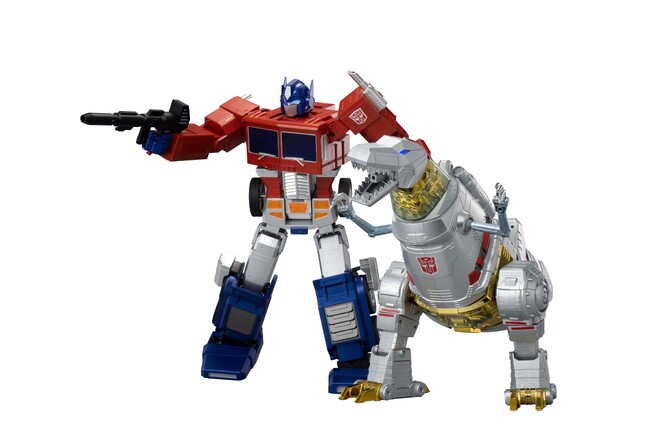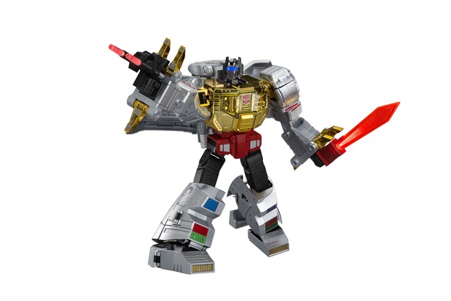 ロボットモードで持たせることができるエネルゴンソードとギャラクシアルロケットランチャーはLEDライトで発光します。また、マーベルコミックでオートボットのリーダーとなった姿を再現できる王冠、グリムロックが描かれたオリジナル記念コインが付属します。