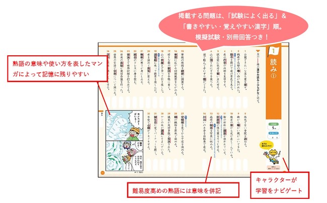 マンガ、パズルで小・中学生が楽しく学習できる漢検問題集