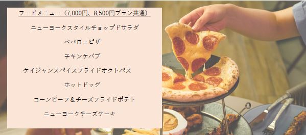 この夏はNYスタイルのビアガーデンを都会のオアシスで!ピザやチキンケバブ、ホットドッグにチーズケーキなど、NYを感じるフードとビール以外にもサマーカクテルなど豊富なメニューのフリーフロー!